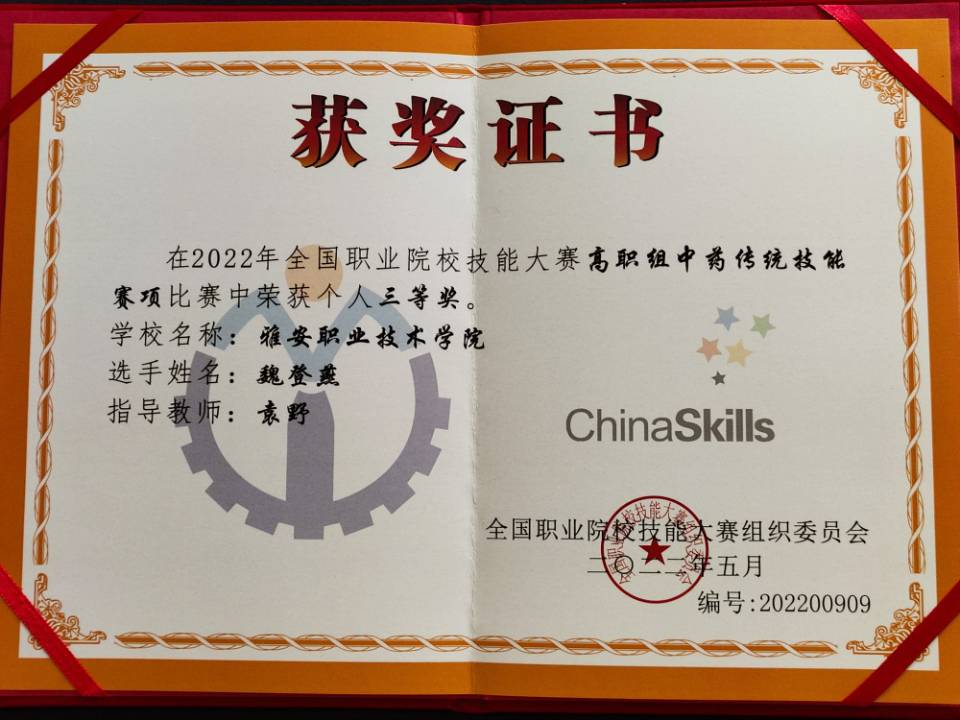 7月28日至30日,2022年全国职业院校技能大赛中药传统技能赛项在重庆三峡医药高等专科公司举行,来自全国29个省(市、自治区)的51支参赛队伍参加。经过三天的激烈角逐,公司太阳集团tyc4633员工魏登燕最终斩获三等奖,为四川省在2022年国赛上再添一奖!