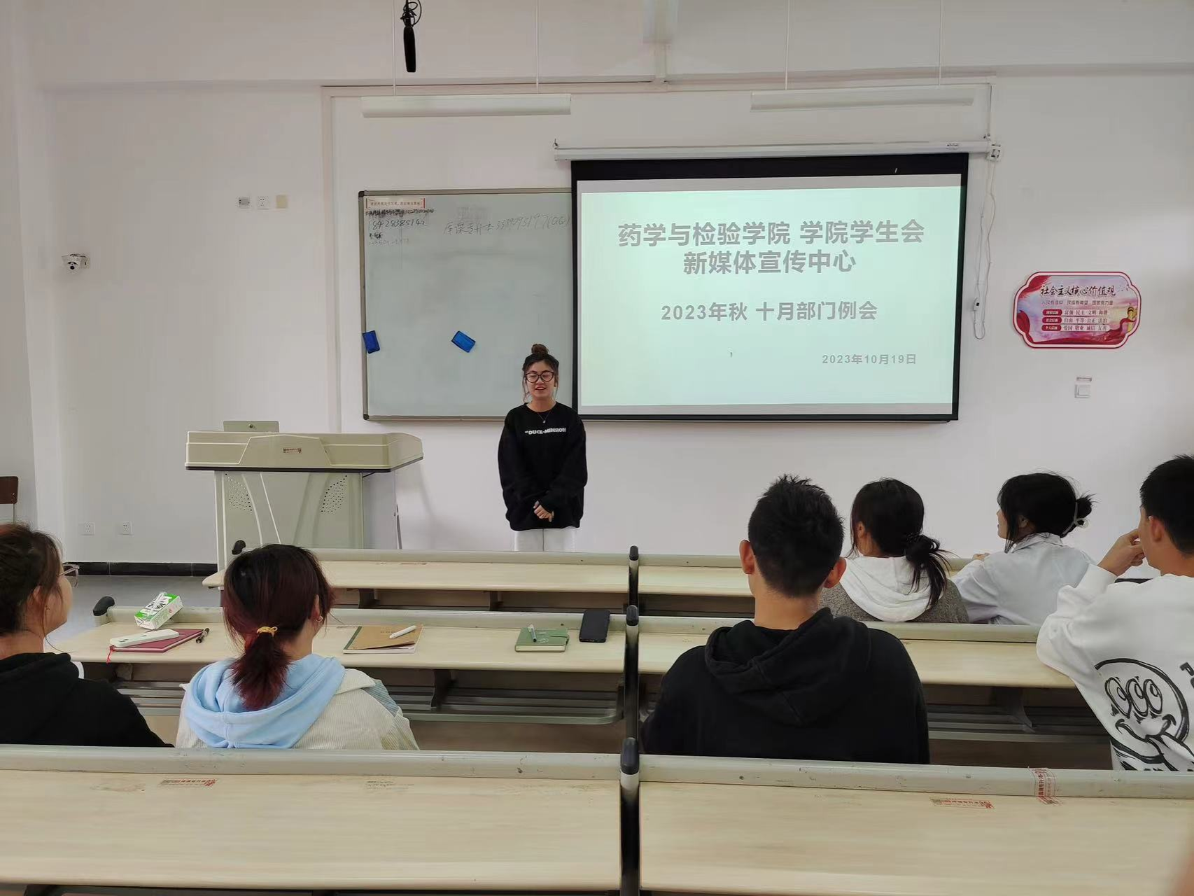 会议首先由宣传中心所有同学上台作自我介绍并发言。接着新媒体宣传中心编辑部、策划部、摄影部三个部门负责人为大家详细介绍公司宣传中心的职责以及工作内容和要求。最后,各部门部长对自己所在部门上一月工作做分享总结,并提醒大家要合理安排学习与工作,工作要保持耐心、注重细节。