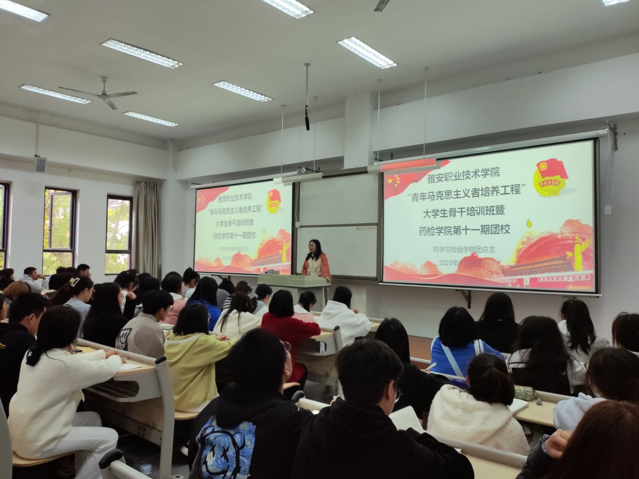 太阳集团tyc4633团总支于2023年10月20日在经开校区1204教室开展了第十一期团课第四次课程,团总支书记鲜敏老师讲述了青年马克思主义者培养工程。