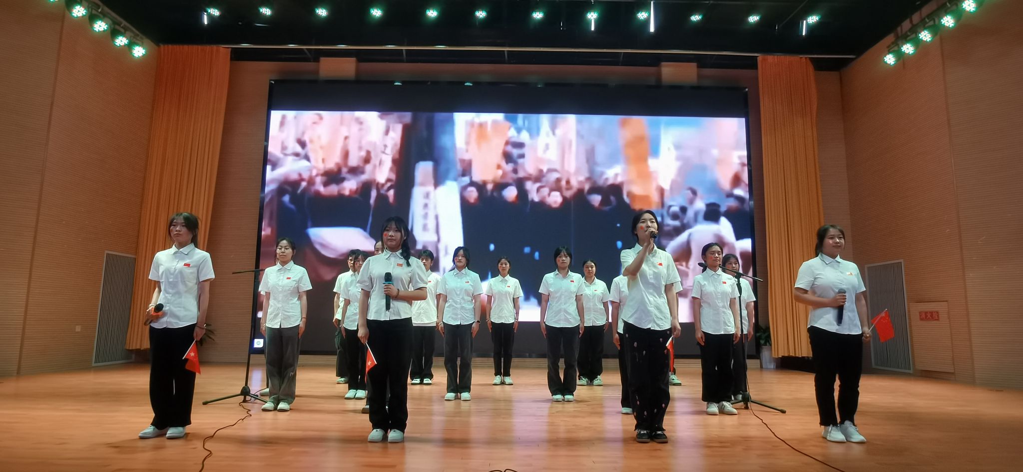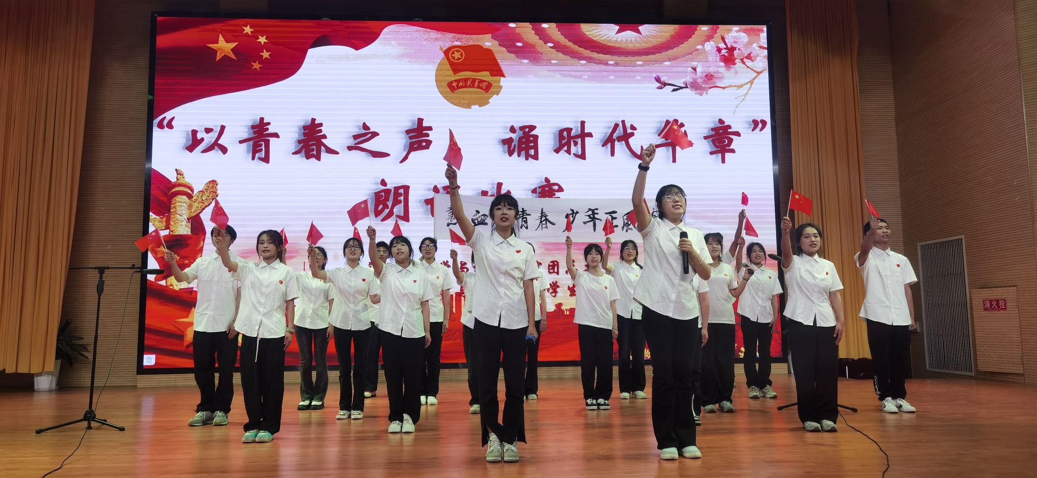 本次比赛共计十二支参赛队伍,比赛队伍着装整齐,以饱满的热情充分展现了当代青年的精神风貌,为大家带来了一场视听盛宴。比赛过程中,参赛队伍你追我赶、精彩不断,诞生了《青春中国》《五四之歌》《青春》等优秀作品。其中《致先辈》《青年誓言》在此次比赛中获一等奖。