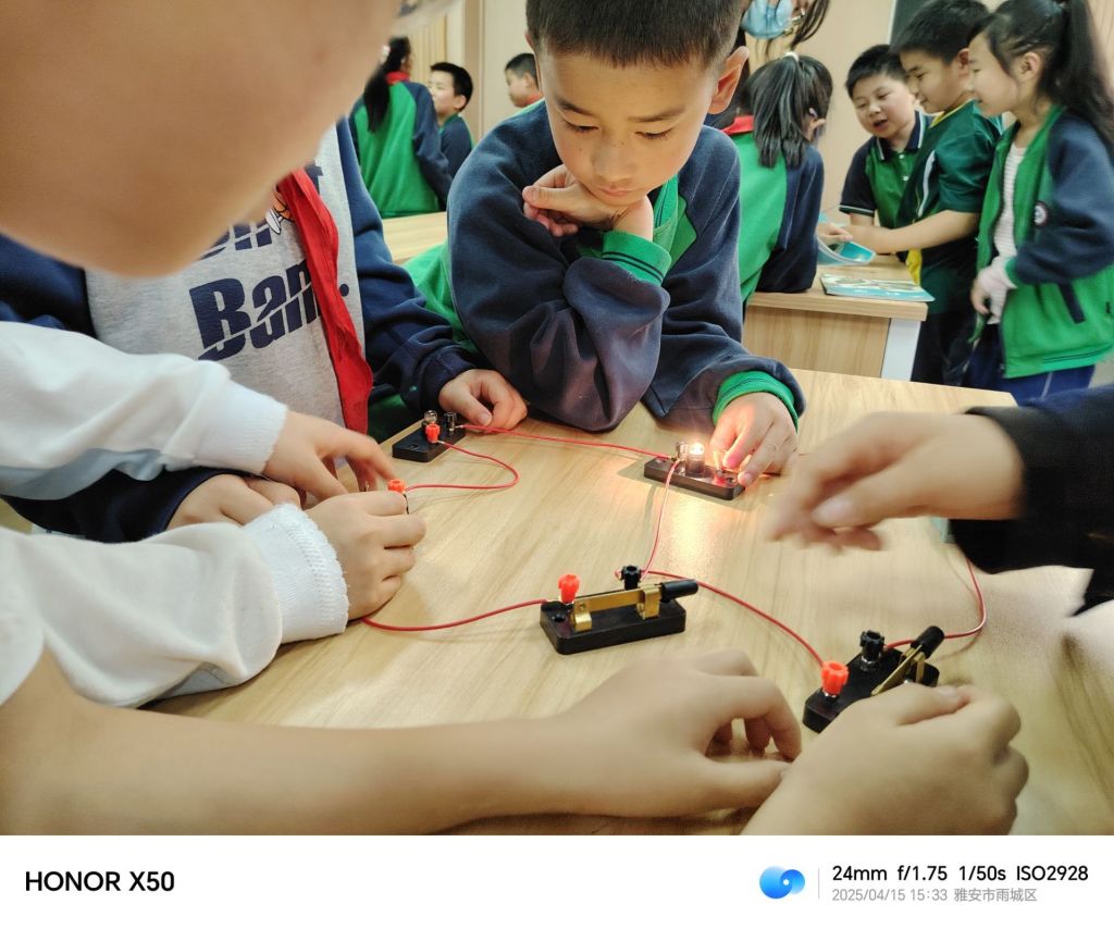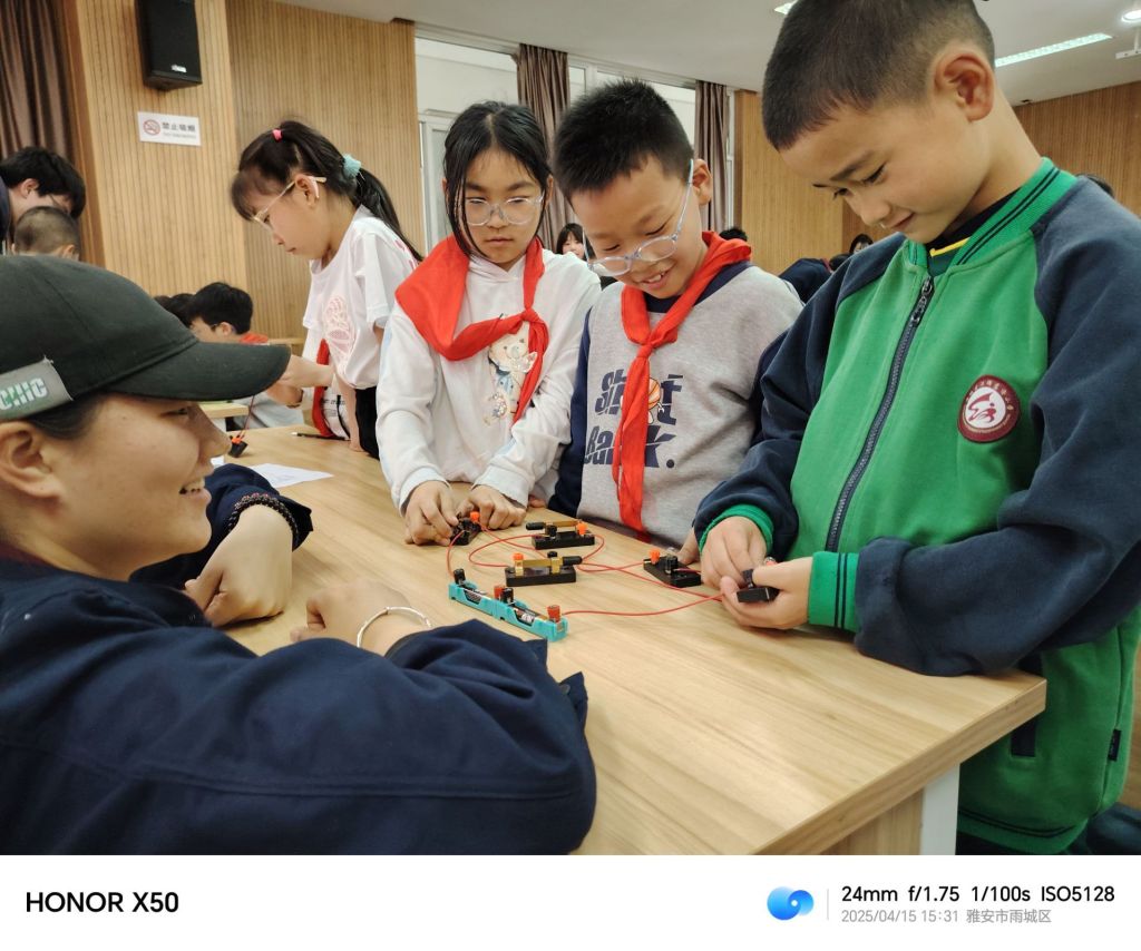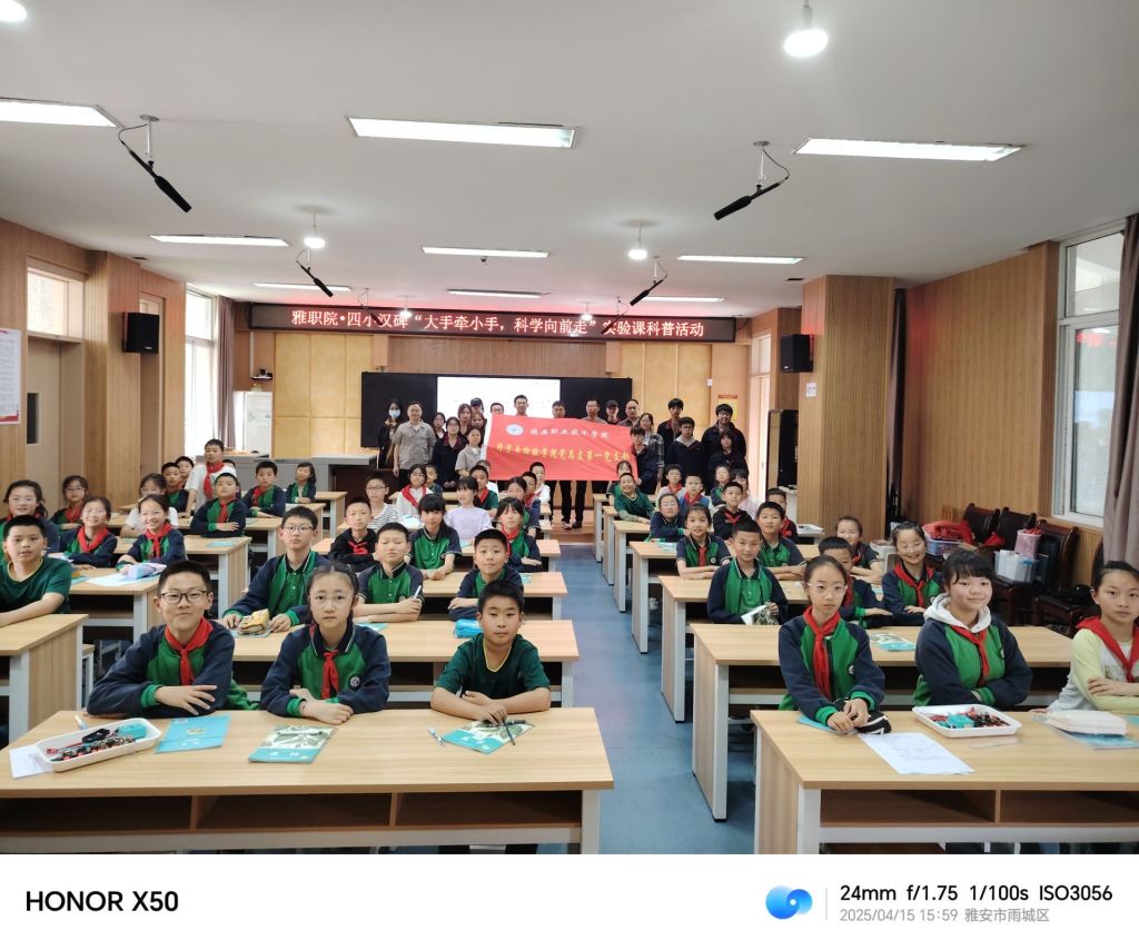 2025年4月15日和22日,太阳集团tyc4633联合智能制造与信息工程公司,对雅安市雨城区汉碑慈济小学四年级5个班开展“大手牵小手,科学向前走”科学实验课科普活动。