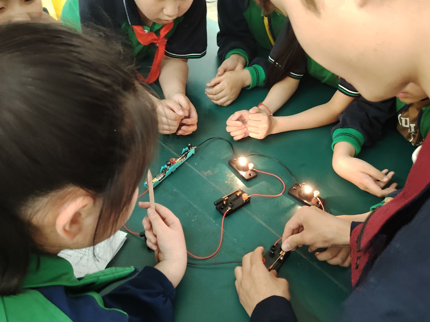 本次科普活动紧跟小学四年级科学课教学进度及时开展“导体与绝缘体的秘密”实验、“神秘暗盒探秘——电路侦探任务”和“串联与并联电路现象探究”实验。电路知识对于小员工来说比较抽象,通过实验教学,小员工能够更加形象地理解电路线路连接知识。本次活动起到一个巩固理论知识的作用,他们打下牢固的基础,以后在初中阶段学习深奥的物理知识更轻松。