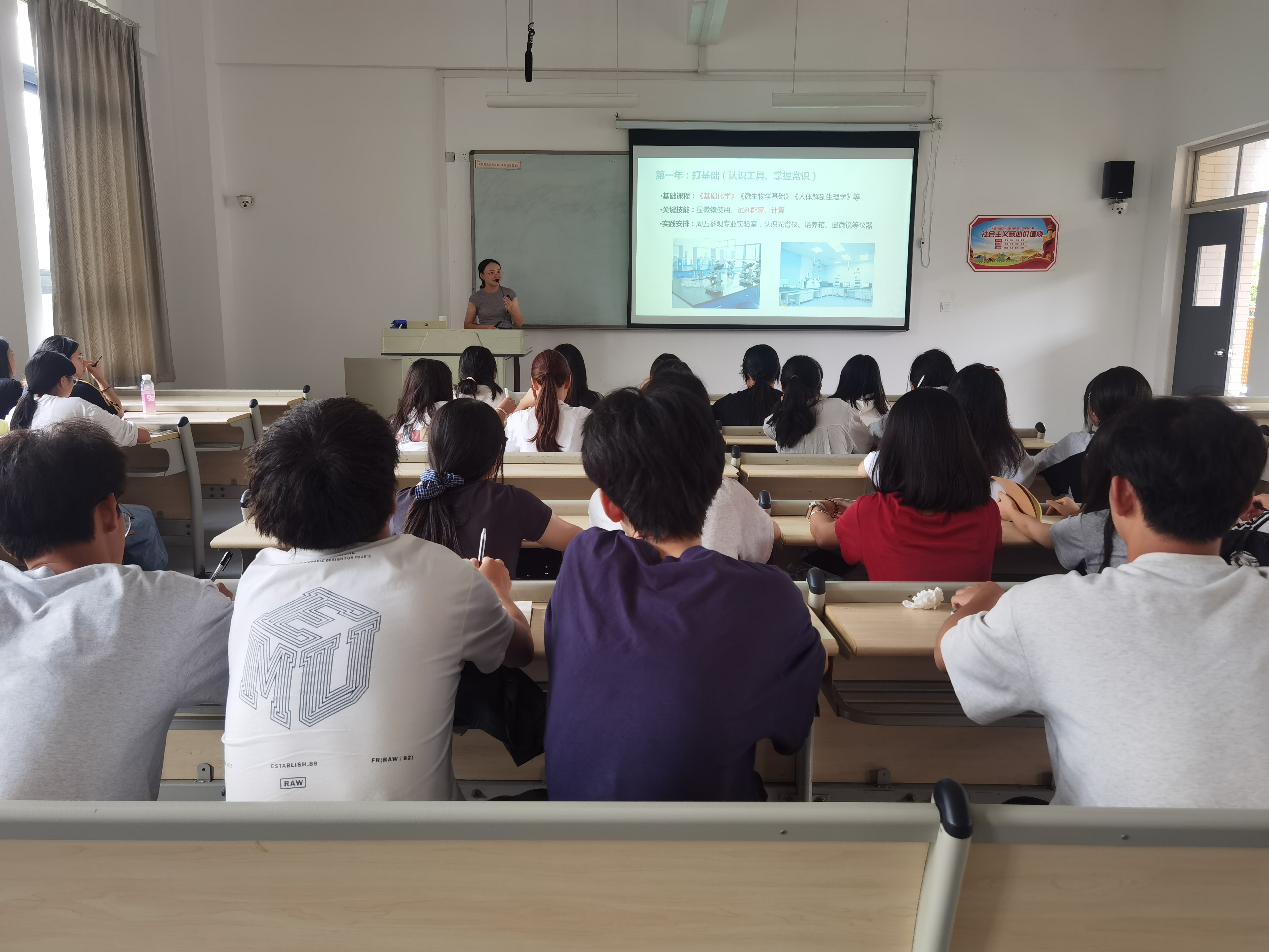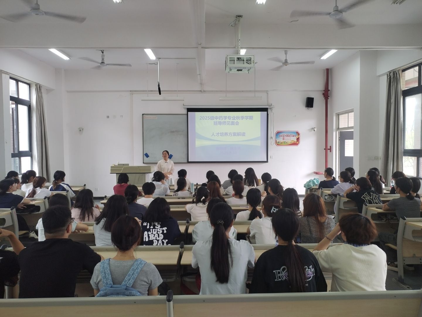 9月10日当天,新生教育全面启动:上午由辅导员组织班会,围绕“大学集体生活规范”“校园安全注意事项”等主题开展交流;下午按班级召开班导师见面会,班导师结合工作计划表,系统讲解人才培养方案、学籍管理细则、考试管理制度及补考重修流程,让新生清晰了解学业要求。9月11日下午,公司在聚雅厅分两批开展入学适应性教育(14:30-16:30面向食品类、卫生检验与检疫技术、中药学、医学营养专业;16:00-17:30面向药学、医学检验技术、现代农业技术专业),党政班子成员主讲,从“校园生活指南”“专业学习方法”“心理调适技巧”等方面答疑解惑,有效缓解新生入学焦虑。
