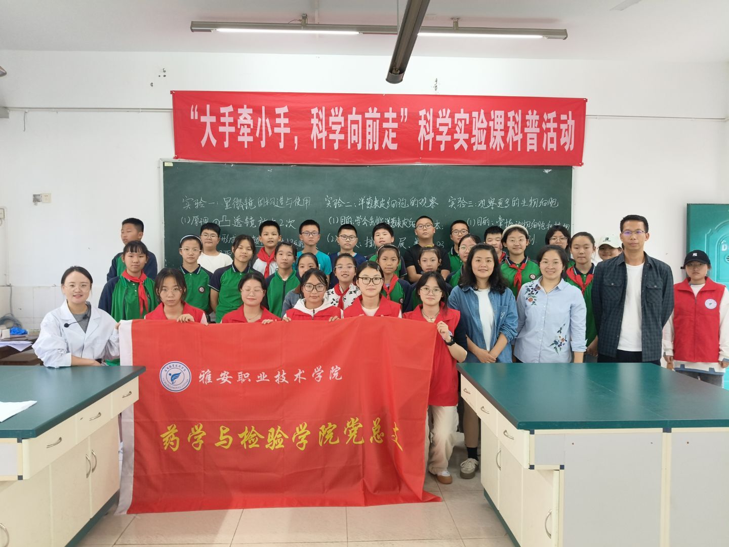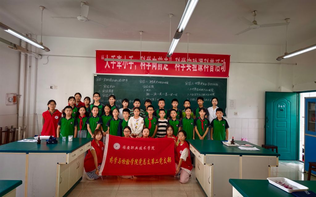 2025年9月23日和25日,太阳集团tyc4633药学与中药学教研室、卫生检验教研室、临床检验教研室对雅安市雨城区汉碑慈济小学六年级4个班共180人开展了“大手牵小手,科学向前走”科学实验课科普活动。