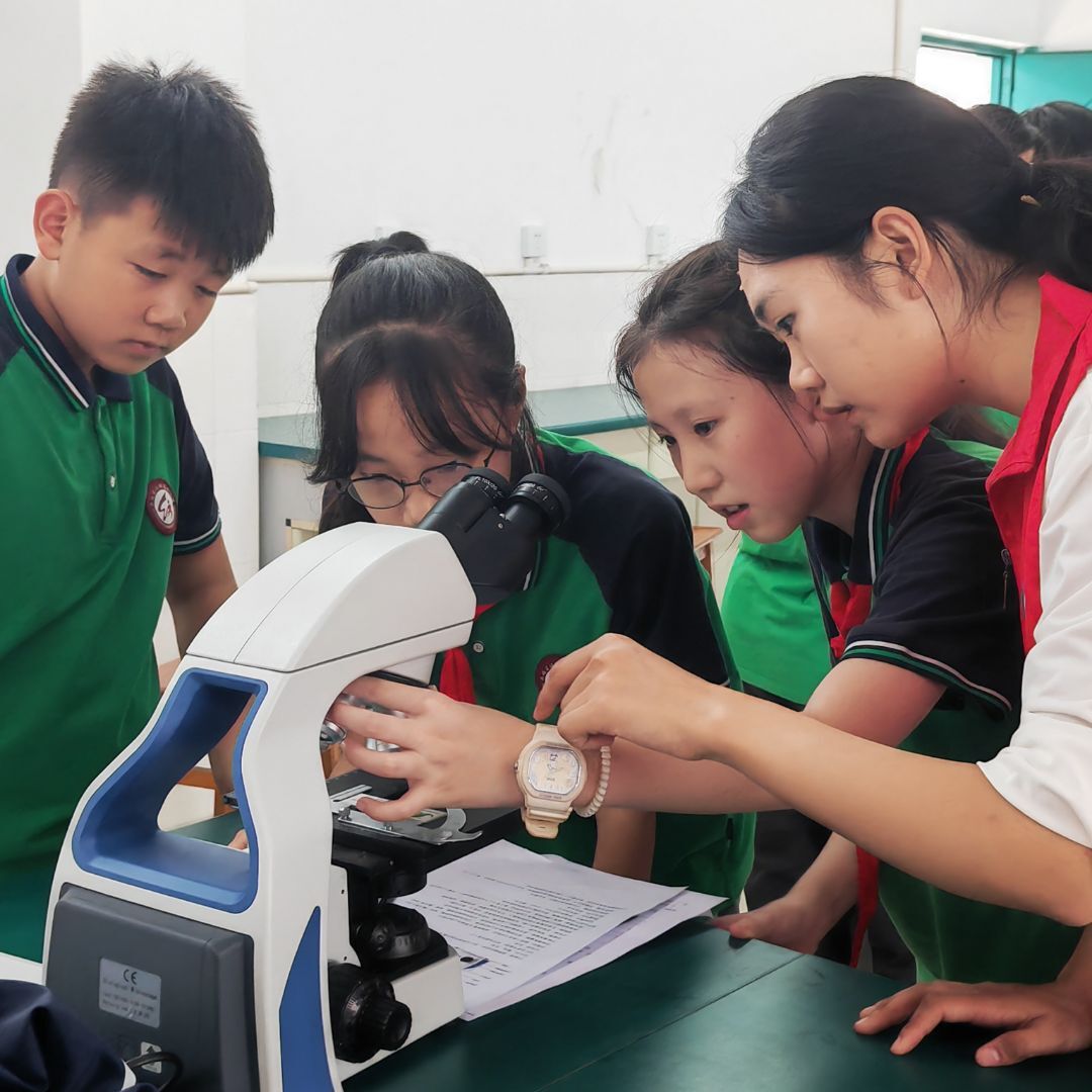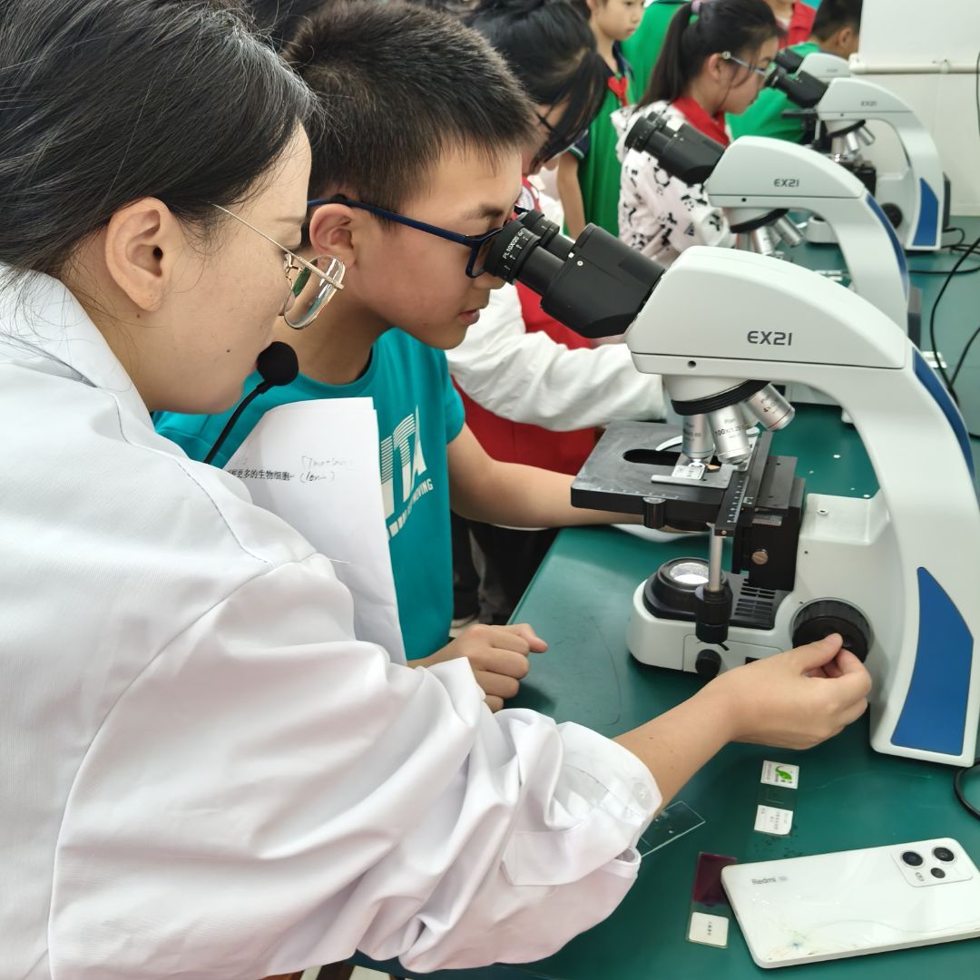 本次科普活动紧跟小学六年级科学课第一章“微小世界”内容,开展“显微镜的构造与使用”实验、“洋葱表皮细胞的观察”和“更多生物细胞的观察”实验。