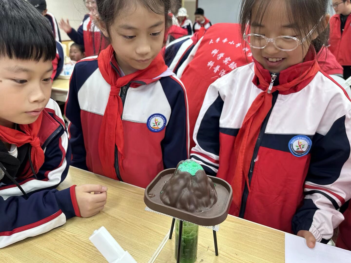 火山喷发实验现象生动有趣,用食用油和水的分层演示地质岩层,泡腾片遇水产生气泡来演示地壳岩浆涌动,小苏打和柠檬酸反应演示火山喷发现象,帮助员工直观理解地球内部能量释放的过程。实验中,孩子们观察到“岩浆”喷涌而出的瞬间,纷纷发出惊叹,激发了浓厚的科学兴趣。