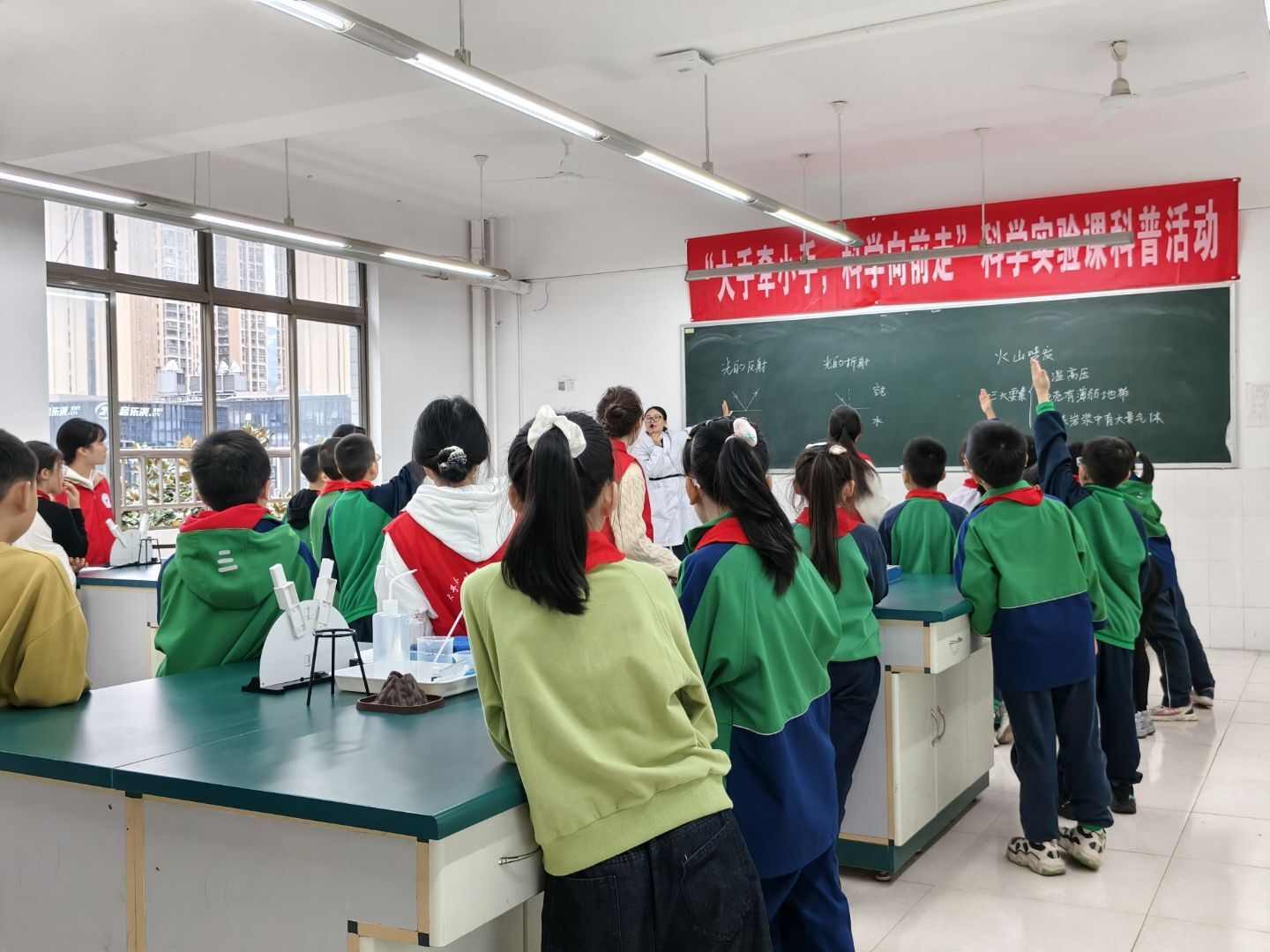 2025年10月21、23、28日,太阳集团tyc4633联合智能制造与信息工程公司,对雅安市雨城区汉碑慈济小学五年级265名员工与雅安市雨城区光华公司五年级220名员工开展了“大手牵小手,科学向前走”科学实验课科普活动。本次活动紧跟小学五年级科学课教学进度及时开展“光的传播”实验、“火山喷发”实验。