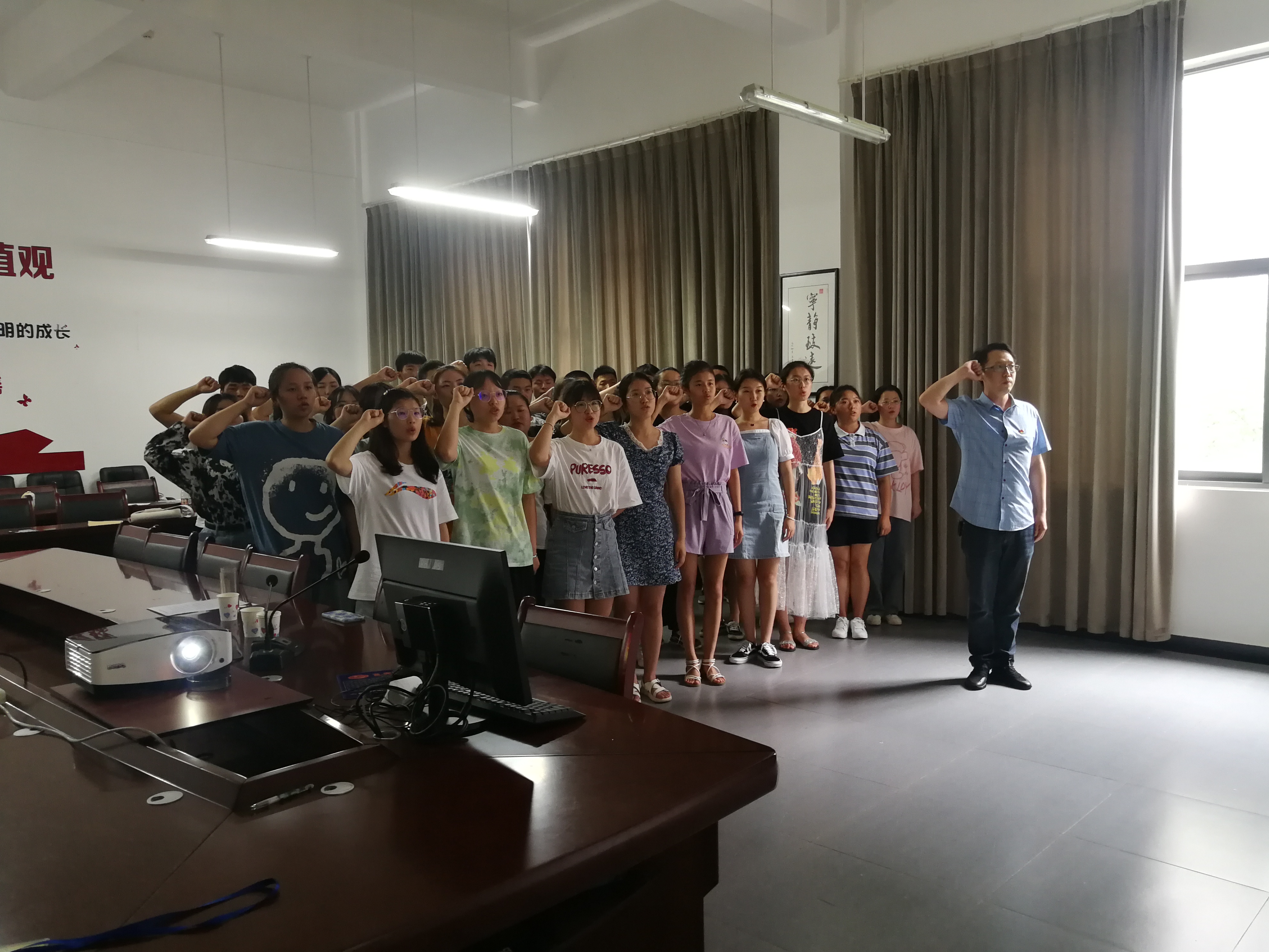 在这建党100周年之际,药学与检验公司党总支举行新党员入党宣誓老党员重温入党誓词活动。6月30日中午1:00,在经开区药检院会议室第三党支部书记杨文君带领40名员工新党员和教师老党员此项活动,杨文君书记作为领誓人,带领现场党员集体入党宣誓。