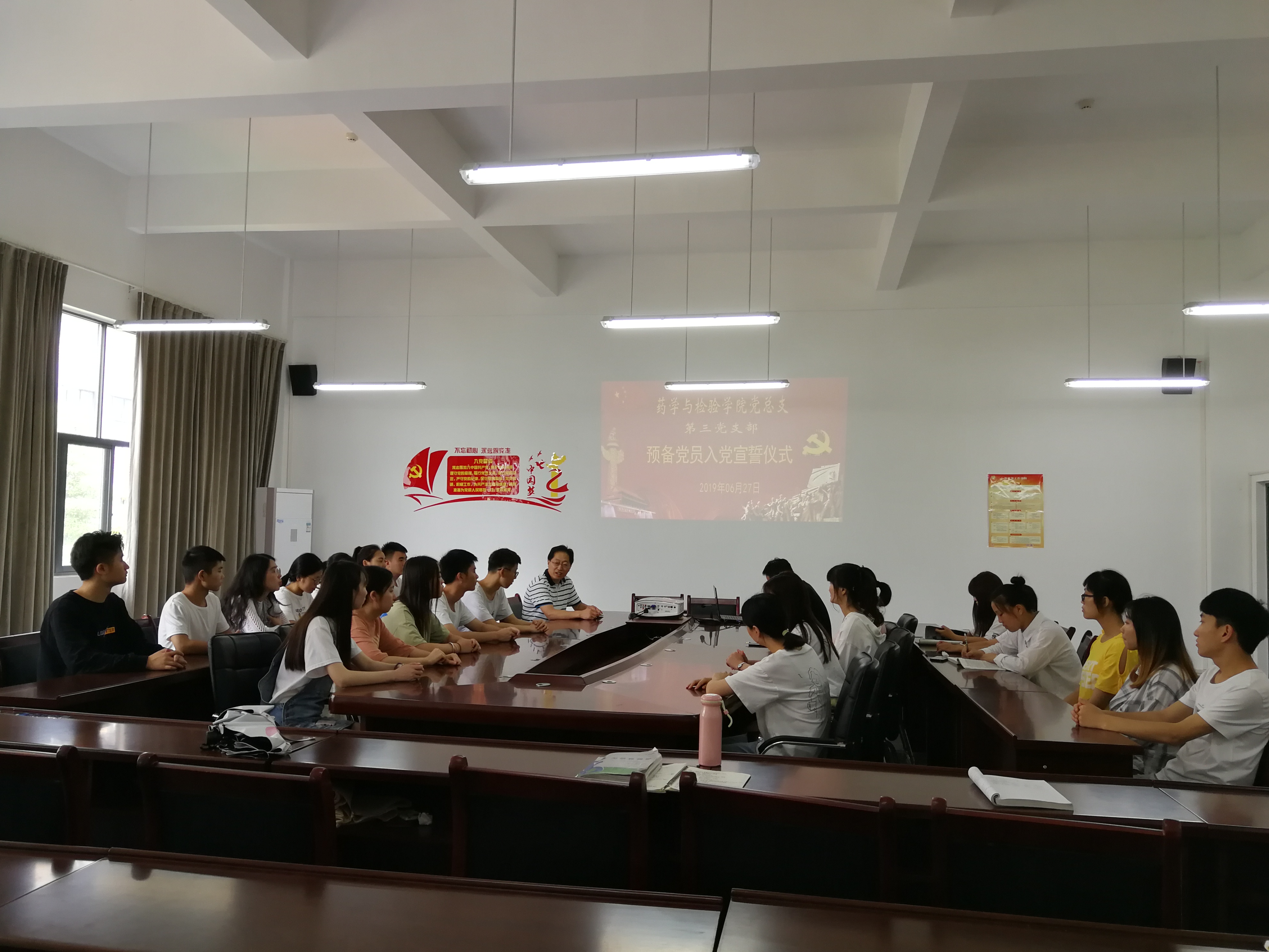 为庆祝建党70周年,提高员工党员的党性修养,让员工党员明确自己的职责与担当,6月27日中午12:30,公司党总支第三党支部在经开区205会议室开展了“员工新党员宣誓暨老党员重温入党誓词活动”。党总支书记杨泽刚、第三党支部书记杨文君、支部委员王宁、陈静以及21名预备党员(其中教师1名)参加了此次活动。