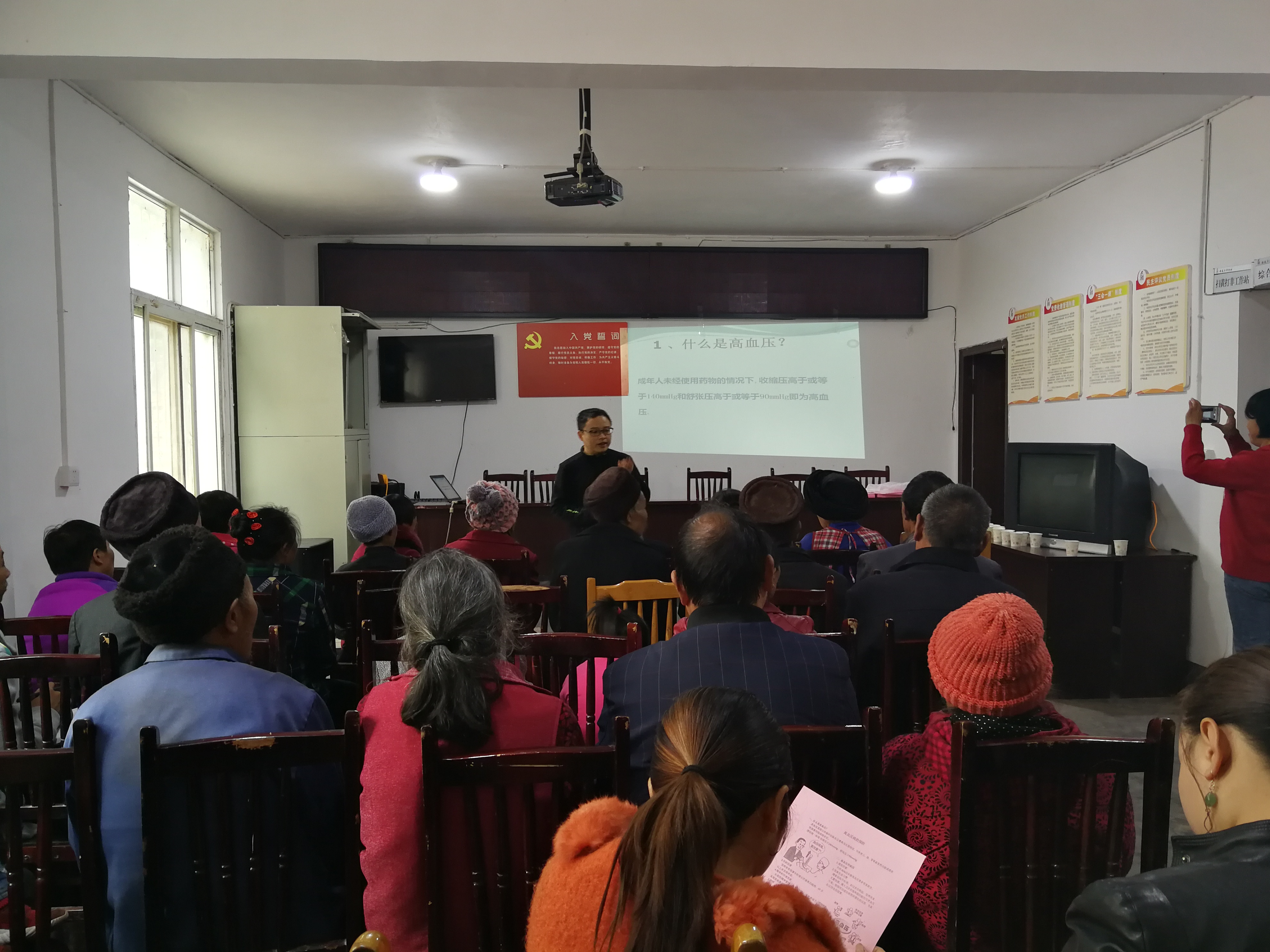 上午11点,老师们到达西溪乡平和村党员活动室。本次活动主要是捐赠图书,送去医学健康知识。活动开始,在宋处长的带领下,老师们将三箱图书捐赠给西溪乡平和村。图书类型多样,包含历史文化、医学饮食等各方面,希望村民们能在图书借阅室获得更丰富和愉悦的时光。同时,杨书记和各位老师对前来参加活动的村民发放《合理膳食,健康生活》《高血压病的预防》的宣传单,对不识字的老年人进行了简单的说明。接着,西溪乡乡长致辞,代表村民感谢公司对西溪乡的帮扶。杨书记和宋处长也分别进行了讲话,希望为乡村的发展做贡献,大家共同实现中国梦。最后,林浩老师做了题为《老年人用药健康知识》的讲座。林老师用通俗易懂的语言,介绍了高血压、高血糖等老人年常见疾病的预防和用药知识。讲座过程中,林老师也根据老年人提出的实际问题进行积极解答。老人们听后均表示收获丰富。