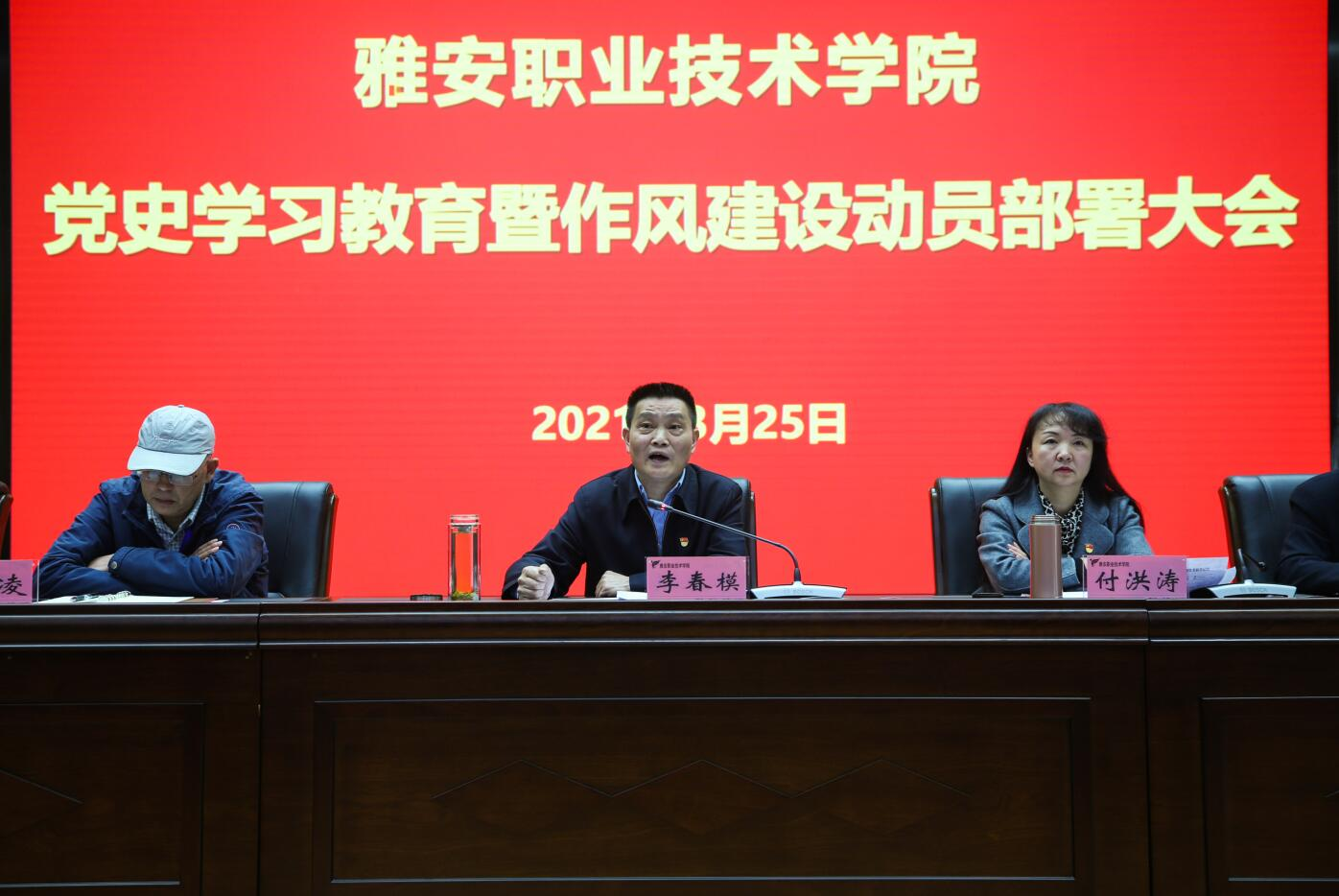 李春模强调,公司正处于改革发展的关键时期,更需要我们解放思想、担当作为。今年是“十四五”规划开局之年,是公司建校70周年,是公司争创省“双高”校,为提质培优、提档升级打下坚实基础的关键之年,我们要将作风建设贯穿于党史学习教育中,切实将党史学习教育的成效转化为全面推动公司高质量发展的强大动力。李春模对全院各级党组织和广大党员干部提出了四点要求:一是提高政治站位,坚定理想信念。要提高政治“三力”,强化政治素养;要坚持勤学善思,做到学深悟透;要勇于解放思想,不断引领发展。二是发挥率带作用,做到事不避难。要发挥以上率下的“头雁效应”,强化勇争一流的进取精神,树牢为民服务的价值取向。三是强化治理能力,为担当者担当。要进一步加强制度建设和制度执行,进一步完善激励机制,进一步完善考核评价机制。四是“抓落实、提效率、勇开拓”,推动公司改革发展。要争做高效落实的执行者,攻坚破难的奋进者,无怨无悔的奉献者。最后,他引用习近平总书记的话语:“幸福是奋斗出来的”“伟大梦想不是等得来、喊得来的,而是拼出来、干出来的。”与大家共勉,激励大家面对发展中的困难和问题,不畏惧、不退缩、不推诿,敢于担当责任、迎难而上、攻坚克难。将加强作风建设贯穿学习教育和全面从严治党始终,守正创新抓机遇,锐意进取开新局,在新征程中不断谱写公司发展的时代新篇,以建设高水平高职院校的新成绩向建党100周年献礼。