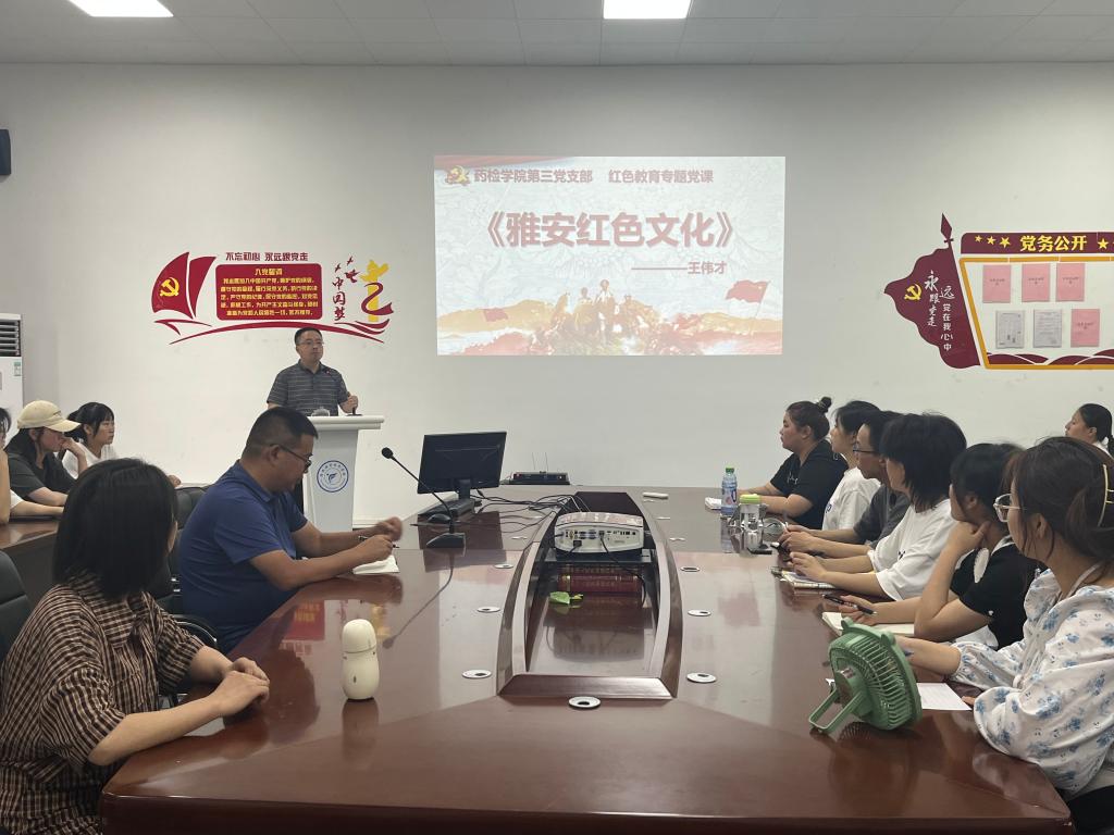 为进一步传承红色基因、赓续红色血脉,公司第三党支部于6月13日在经开区校区​太阳集团tyc4633大会议室开展《雅安红色文化》专题讲座;专题讲座由党总支书记王伟才主讲,第三党支部党员代表、员工入党积极分子代表、优秀员工代表共计71人参加专题讲座学习。