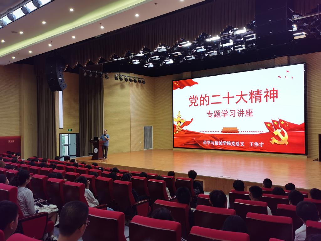 9月13日下午,公司党总支书记王伟才在聚雅厅面向新生作了《党的二十大精神》专题讲座。讲座中,他从党的一大、党的百年伟大成就、党的二十大精神要点等三个方面进行了讲解;同学们听得津津有味。