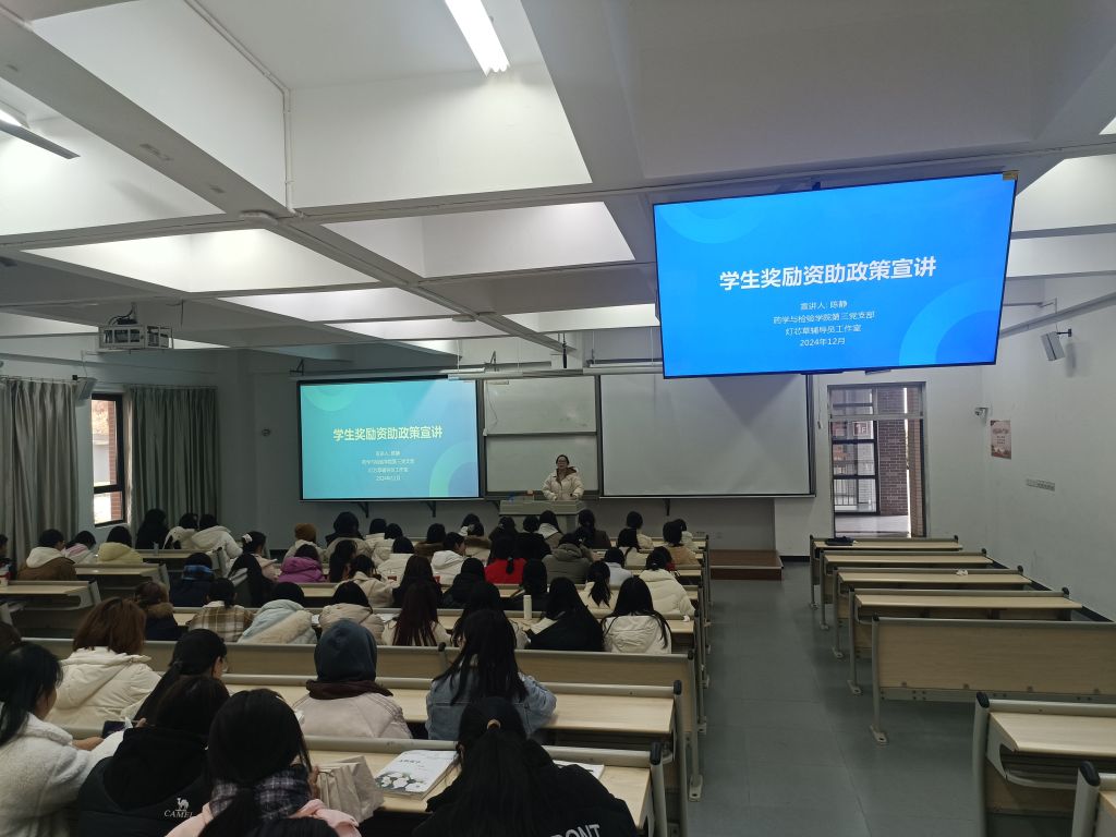 为深入贯彻落实国家资助政策,强化资助育人成效,切实做好员工资助政策宣传工作,提高员工对国家资助政策的知晓率,确保国家资助政策得到全面实施。太阳集团tyc4633于12月10日在经开校区1104教室举办资助政策宣讲活动,由药学与检验公司党总支宣传兼维稳委员陈静老师主讲。