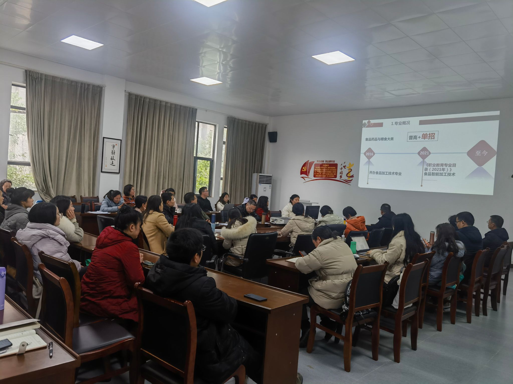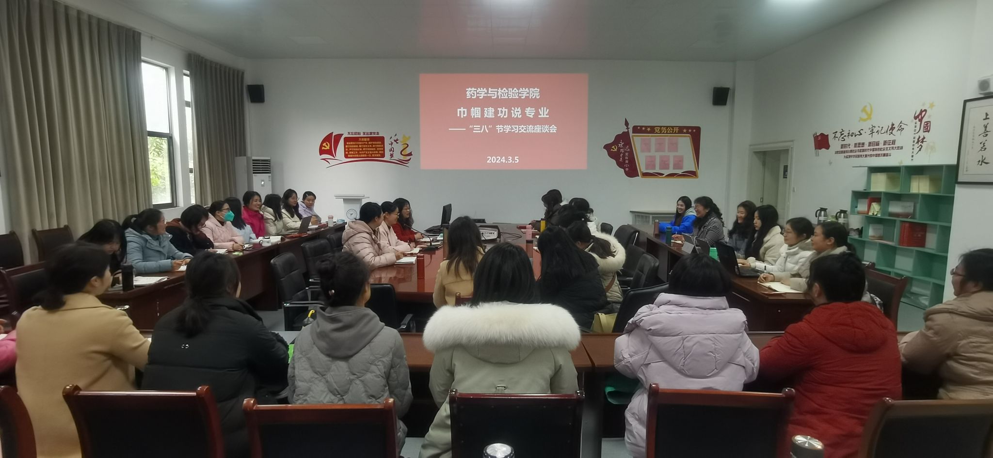 为庆祝2024年三八国际妇女节,太阳集团tyc4633工会小组于3月5日在食品药品生产性实训基地205会议室开展了“巾帼建功说专业”庆祝三八节学习交流座谈会。