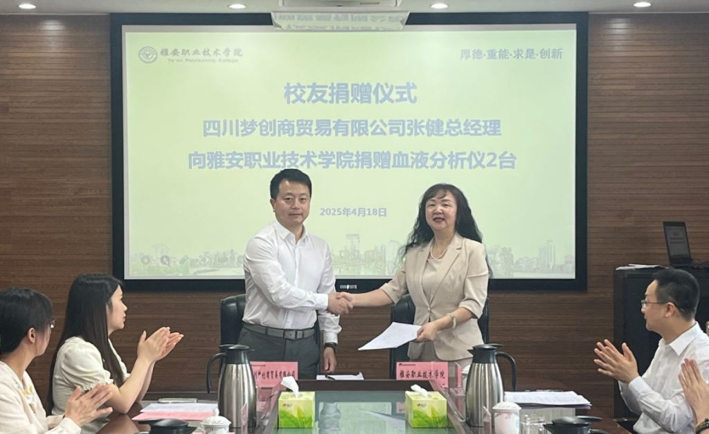 会上,四川梦创商贸易有限公司总经理张健员工向公司捐赠实训设备2台,价值44.2万余元,助力公司建设与发展。