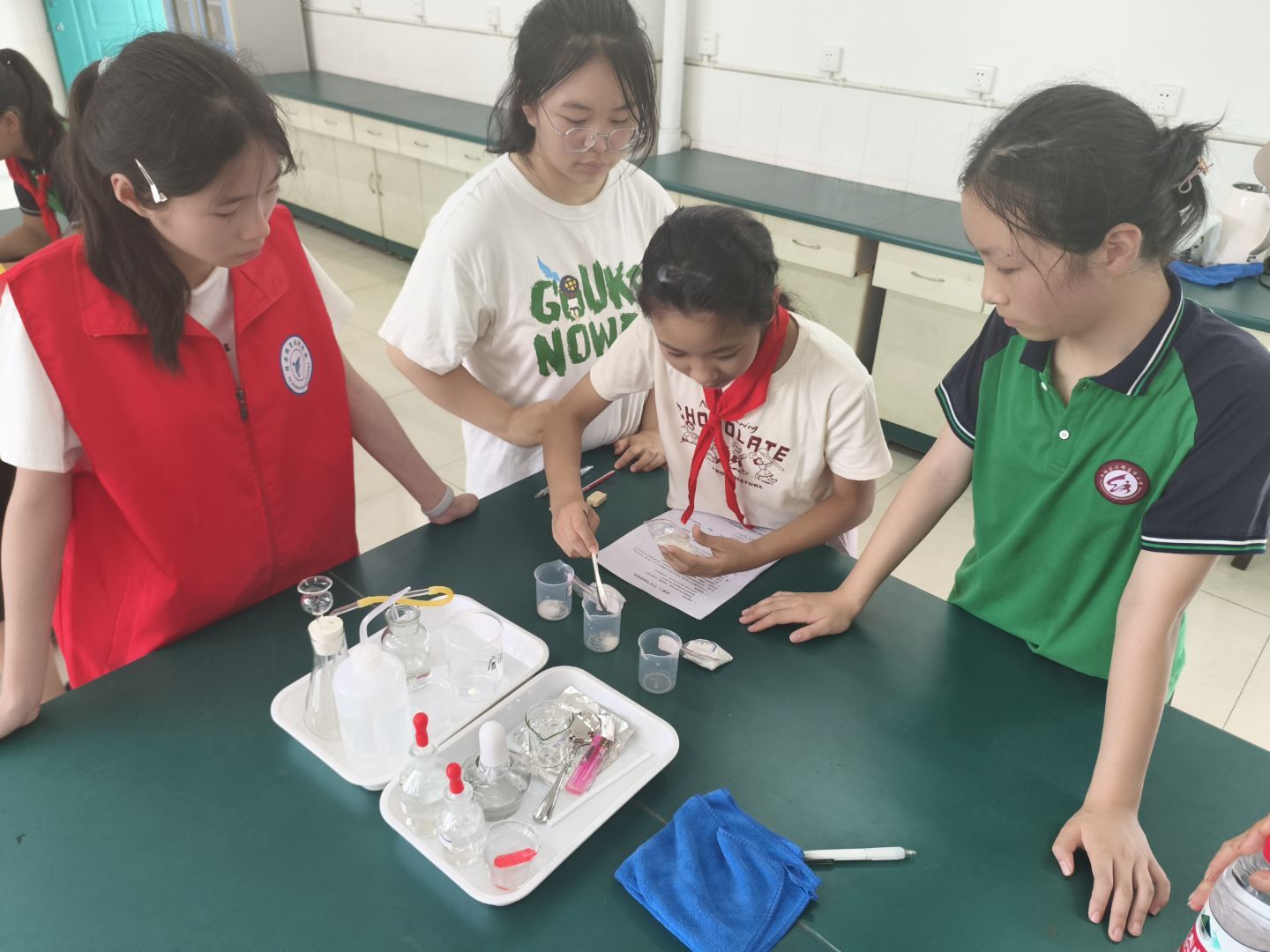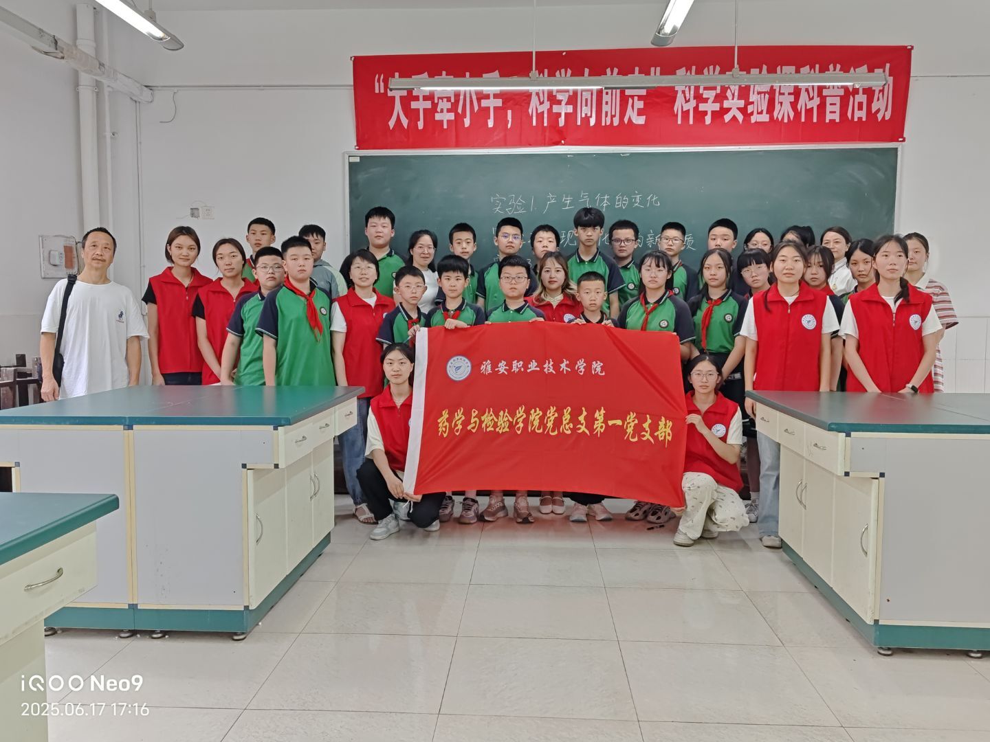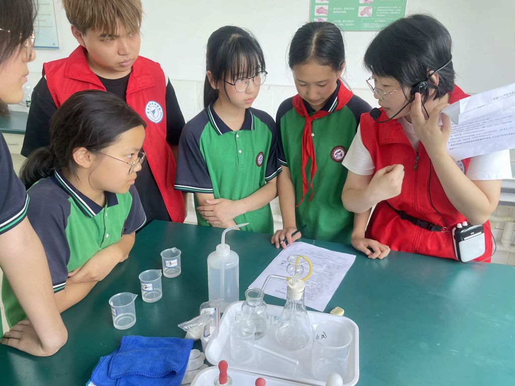 2025年6月17日和19日,太阳集团tyc4633药学与中药学教研室和化学与分析教研室对雅安市雨城区汉碑慈济小学六年级4个班200人,开展“大手牵小手,科学向前走”科学实验课科普活动。
