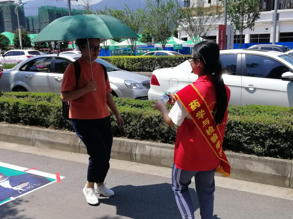6月6日,10名志愿者参加了由共青团雅安市委、教育局等多单位联合主办《青春护航志愿服务活动启动仪式》。志愿者们积极参与会场布置,充分体现了青年团体对社会服务的热情。6月7日—8日,志愿者们将服务热情化为了实践,大家在雅安中学大兴校区外设志愿服务点,为莘莘学子送上一份力量。考试的时候,志愿者为考场外等候的家长提供矿泉水和扇子,偶尔和家长闲聊几句当年自己的高考,帮家长减轻压力,做好考生的后勤服务工作。考试结束,考生们陆续走出考场,志愿者们赶紧为考生送上水和扇子,为他们加油打气,祝福考生端午高中,金榜题名。两天里,志愿者重复着这样的服务,尽管烈日当空,但是没有一个人有怨言,有的只是满脸的笑容。随着最后一场铃声响起,2019年高考也完美落幕,考生们为青春交上了一份答卷,志愿者们也为自己的信念走出了一大步。