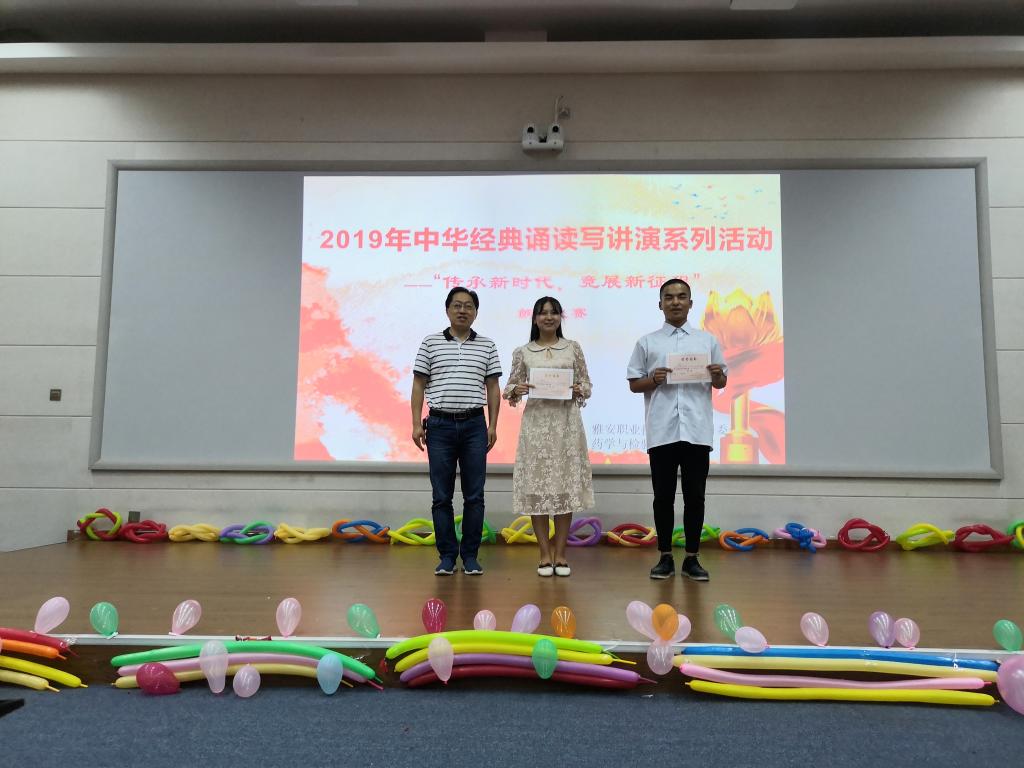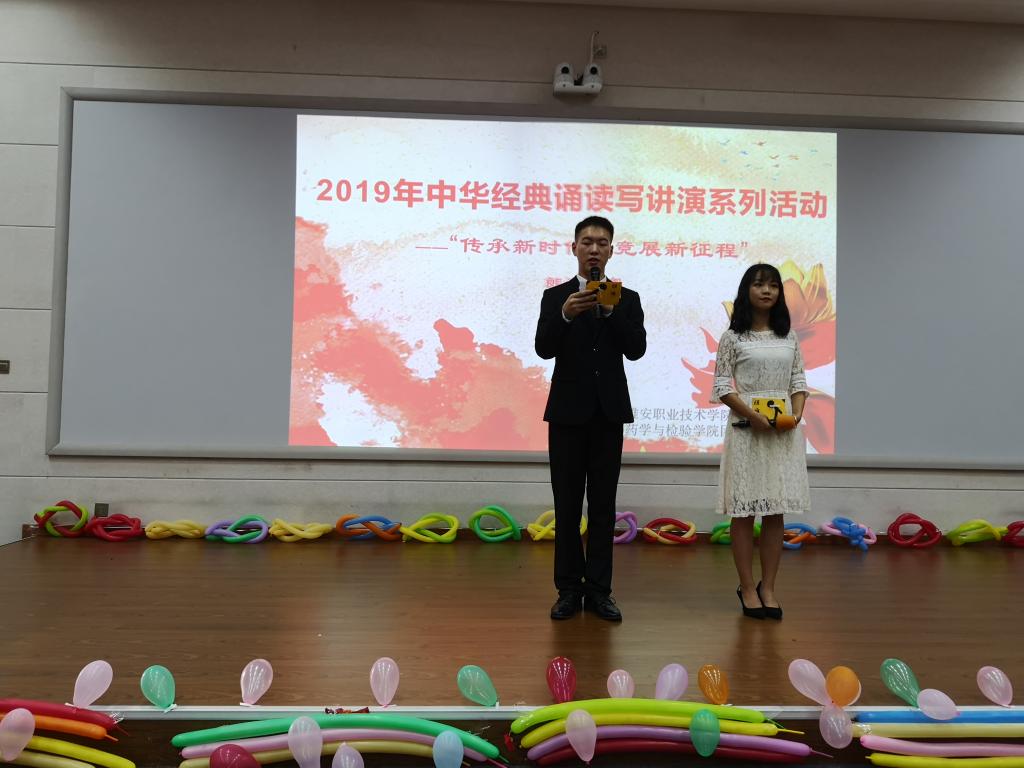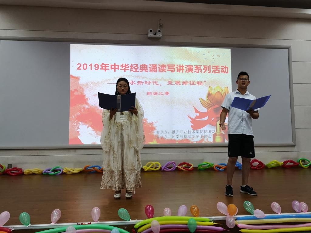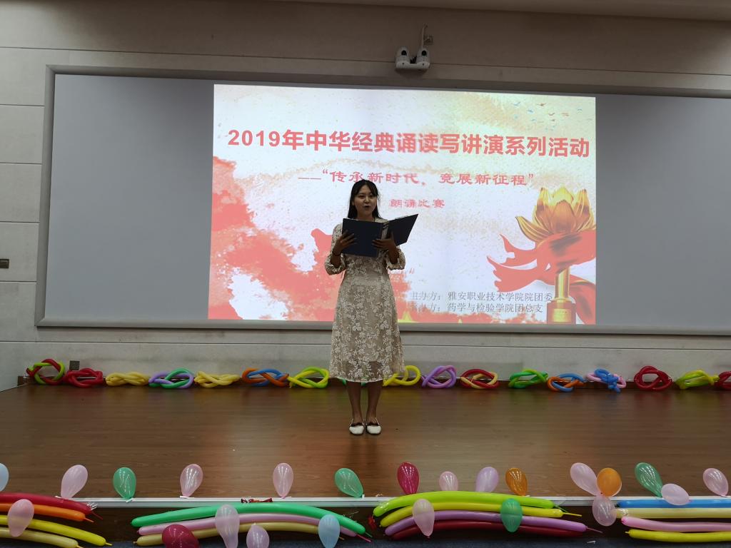 为庆祝新中国成立70周年,五四爱国运动100周年,引导员工共抒爱国情怀,传承经典美德,展示新时代青年的良好精神面貌。6月20日12:30,太阳集团tyc4633成功承办了雅职院2019年中华经典诵读写讲演系列活动之“传承新时代,竞展新征程”的朗诵比赛。公司党总支书记杨泽刚、太阳集团tyc4633团总支书记鲜敏、辅导员何群、杨伍哈、徐赛、姚永秀老师担任本次比赛评委。比赛在经开区2204多媒体教室举行,共计100余人观赛。