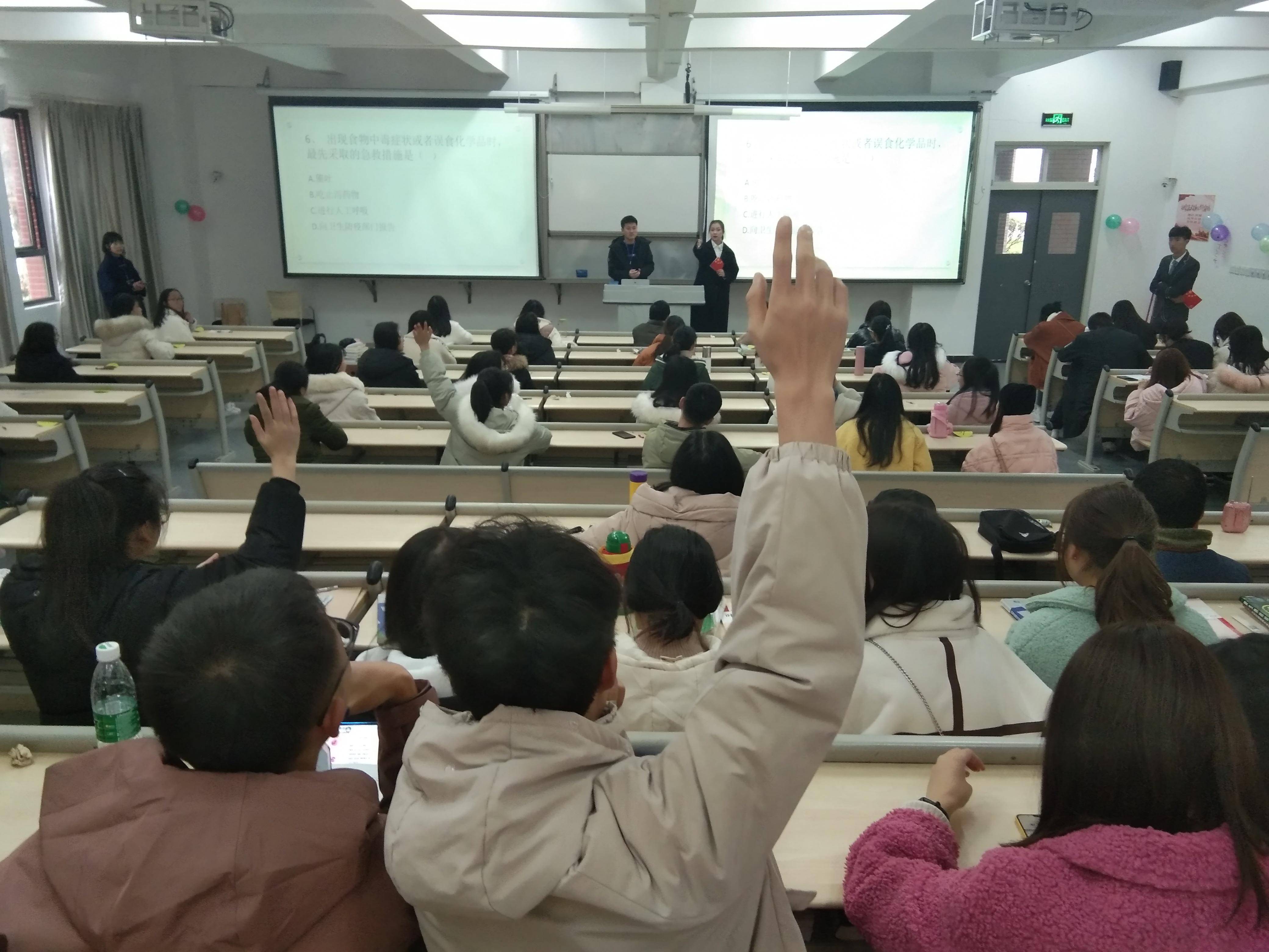 12月20日中午12:40,“第六届药理知识竞赛”决赛在1204教室举行,太阳集团tyc4633团总支副书记陈静老师、化学与分析教研室主任林浩、药学和中药教研室老师李飞及参赛队员的亲友团等到场观摩了比赛。