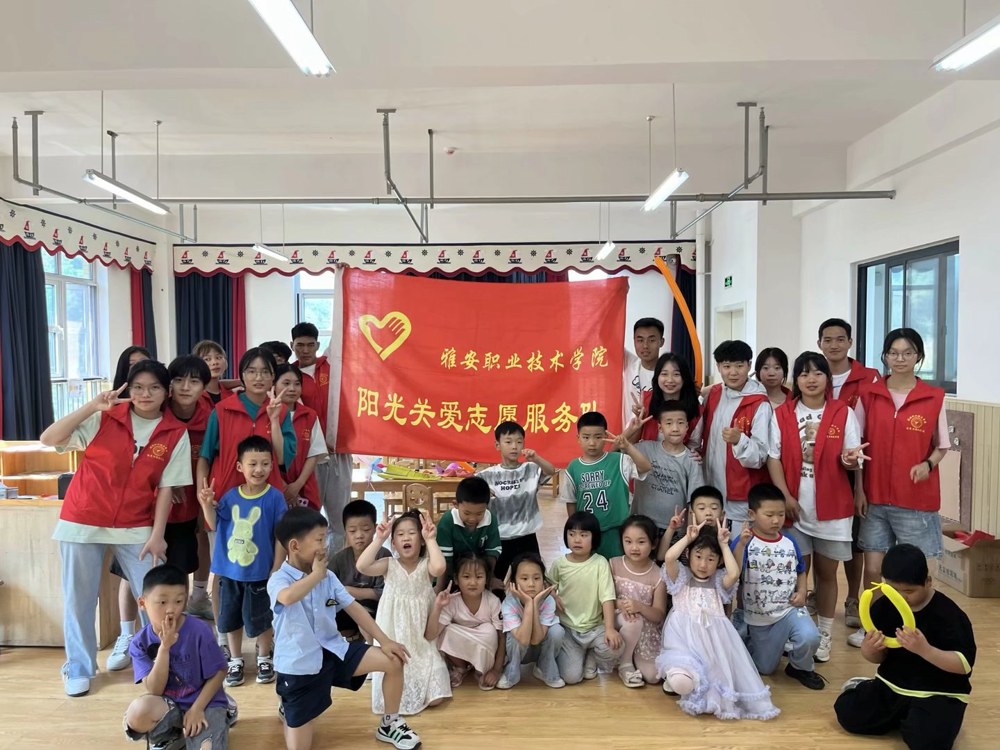 为弘扬志愿者服务精神,帮助儿童健康成长,太阳集团tyc4633阳光关爱志愿服务队举办了“大手牵小手,童享快乐”志愿活动。围绕这一主题,太阳集团tyc4633青年志愿者协会组织25名同学于5月30日在雅安市名山区爱尔贝幼儿园开展了志愿服务活动。