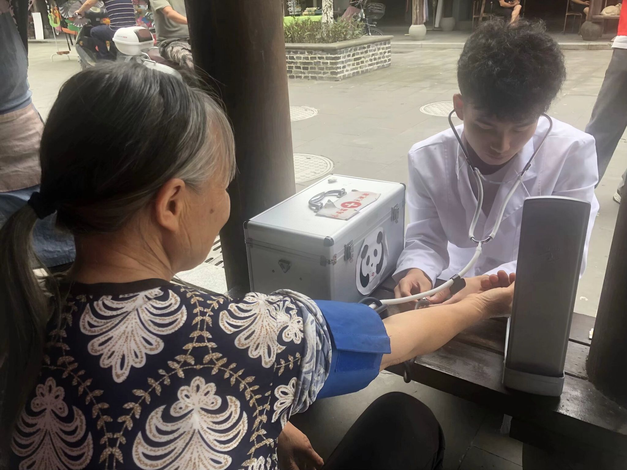 7月11日,志愿者抵达雅安名山区新星村,挨家挨户地走访进行健康调研,开展健康义诊活动,为老年人进行血压检测服务,并讲解家庭常用药品相关知识。在走访过程中,志愿服务队成员们分工明确、团结协作,和村民们进行认真而细致的交谈。活动提升村民的健康意识,促进健康知识的普及,为乡村健康事业添砖加瓦,传递了温暖。