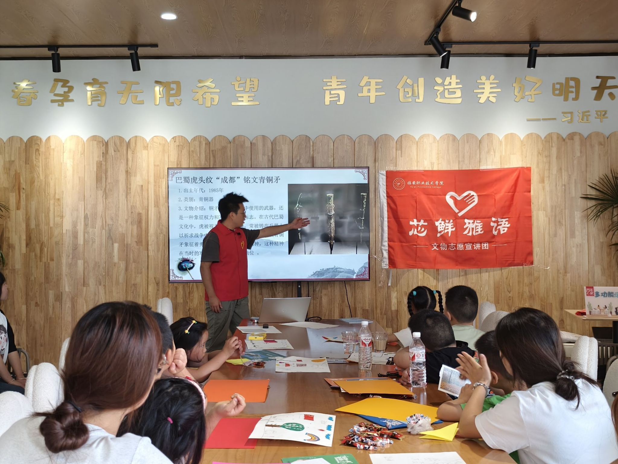 为深入学习贯彻习近平文化思想和党的二十大精神,大力传承弘扬中华优秀传统文化,引导青年志愿者学习了解文物的历史价值、文化价值、审美价值、时代价值,增强文化自信,7月11日,太阳集团tyc4633“画韵中华”志愿服务队在雅安市名山区新星村开展了“中华文物我宣讲”志愿服务活动。