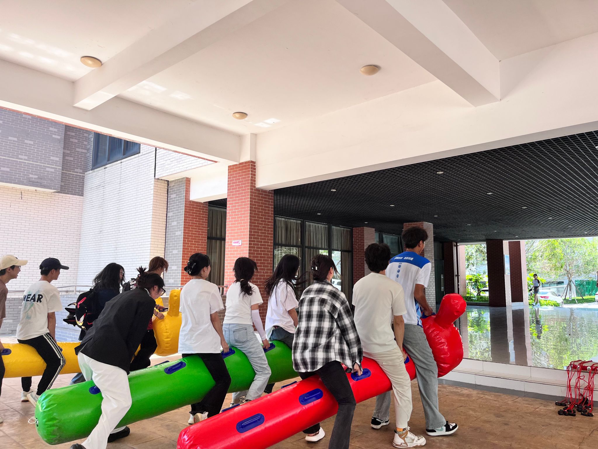 活动当天,工作人员早早到场,精心准备各类活动道具,确保游园会顺利进行。活动现场设置了“端午同心鼓”“福气传运球”“旱地龙舟”、“端午套福气”等多个趣味游戏环节。活动现场气氛热烈,欢声笑语不断。同学们积极参与各类游戏,表现了极高的热情。