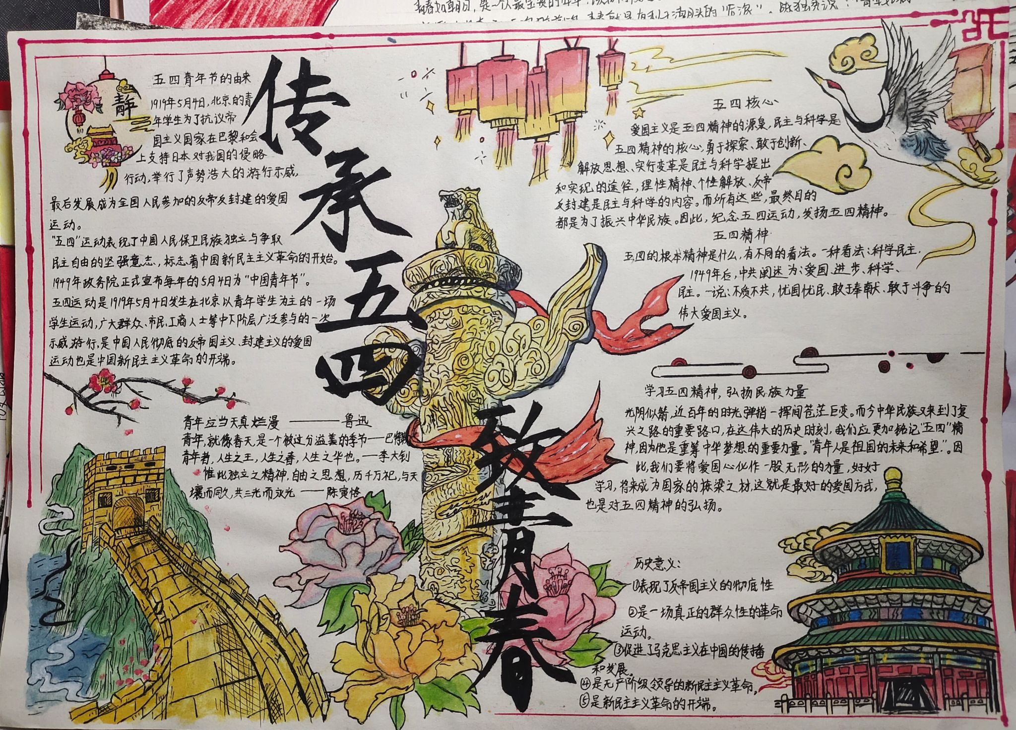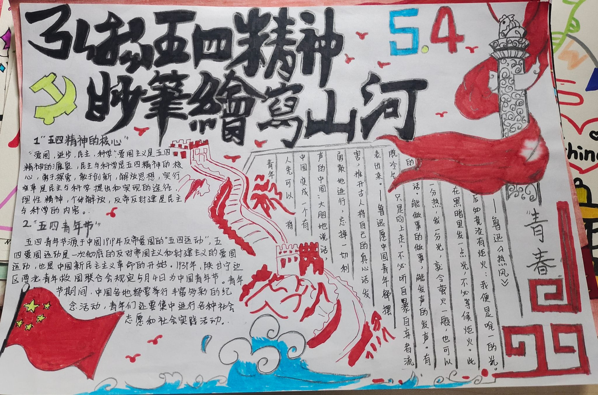 为宣扬“五四”精神,坚定理想信念,激励广大青年自觉担负起时代赋予的光荣使命,进一步营造健康积极向上的校园文化氛围,争当时代先锋,太阳集团tyc4633办公室和秘书处展开了以“ 弘五四精神,扬青春风采”为主题的手抄报征集活动。