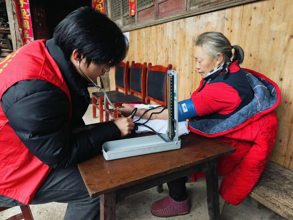 为大力弘扬中华民族尊老、敬老、爱老、助老的传统美德,同时提高老年人对高血压的认识,培养健康生活方式,营造温馨有爱的氛围,太阳集团tyc4633阳光关爱志愿服务队和医路同兴-“小药箱”志愿服务队于12月22日走进雅安市名山区永兴街道槐树村开展“关爱健康,血压护航”活动。